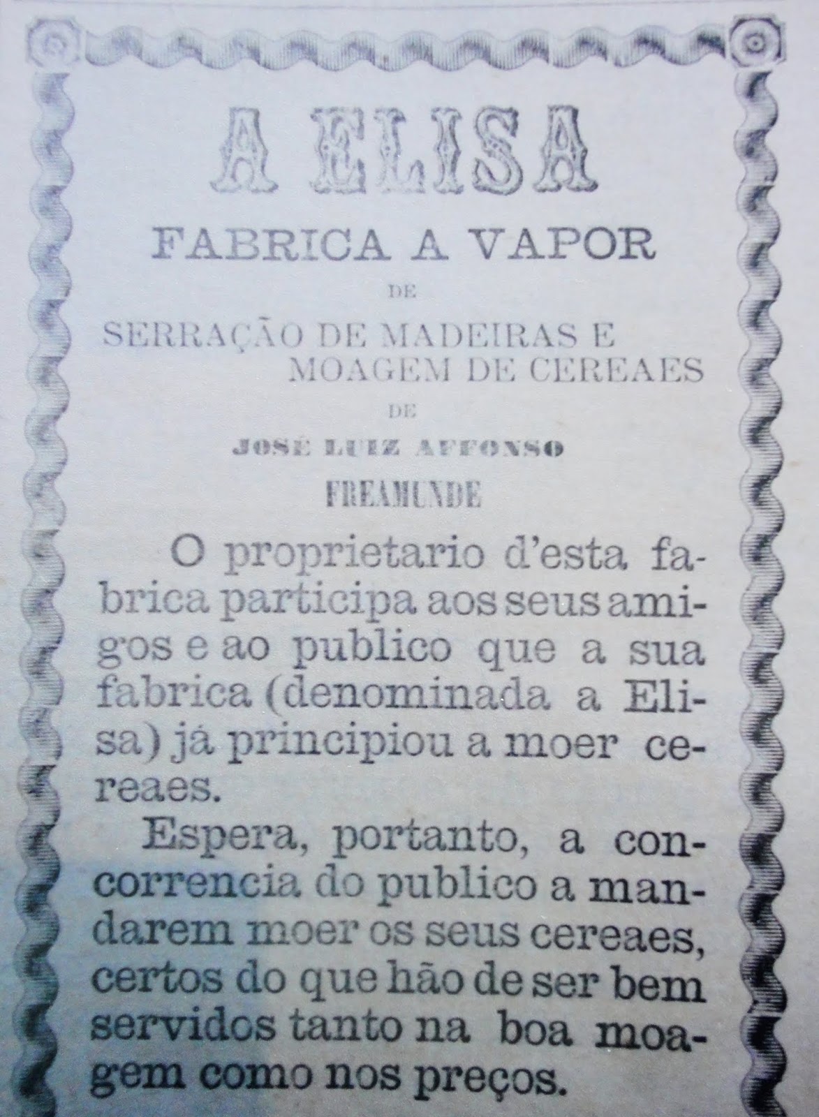 No "Jornal de Paços de Ferreira", pesquisamos e extraímos respigos de um artigo datado de 16 de Maio de 1895: «...