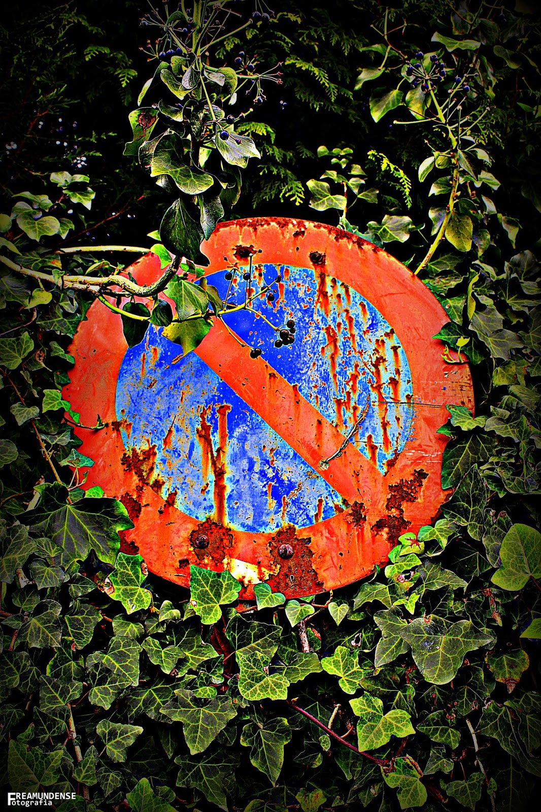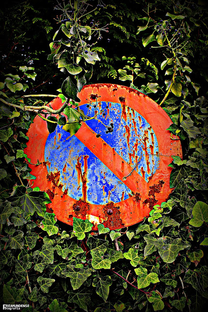 Um sinal de estacionamento proibido na Rua Leopoldo Saraiva, camuflado pelas plantas que crescem à volta dele...As regras de trânsito são para cumprir...