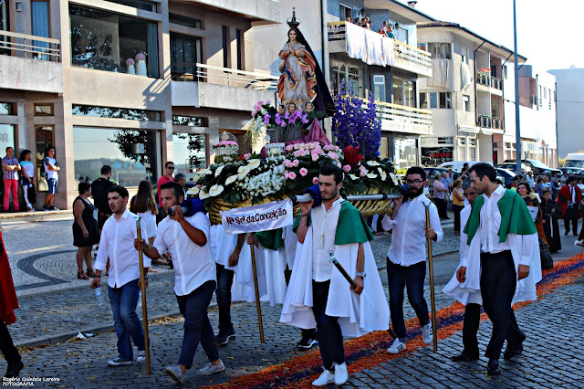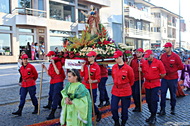 nas procissões, os contínuos tapetes de flores que coloriam as ruas de